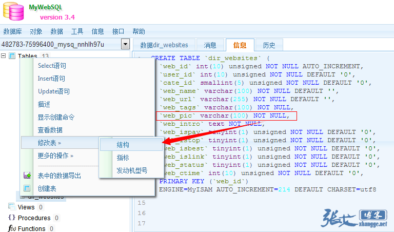由于聚会时间快到了,就先放在一边了。回到家之后,对比了下网上的类似案例,原来是web_pic这个键值设置了不为空导致的,也就是在创建表的时候,使用了not null属性。于是进入mywebsql,登入京东云擎数据库,进行了如下操作: