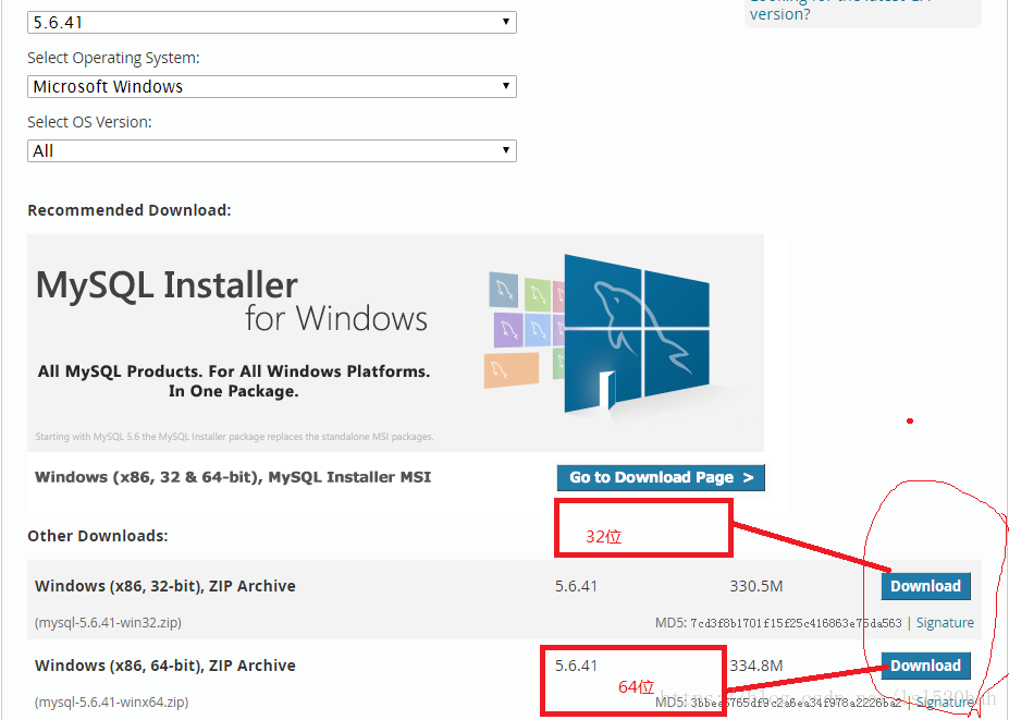 进入官网https://dev.mysql.com/downloads/mysql/5.6.html进行下载。