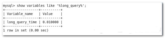 #slow_query slow_query_log=1#开启慢查询 slow_query_log_file=/var/lib/mysql/mysql-slow.log #设置慢查询路径 long_query_time=0.01#设置慢查询时间