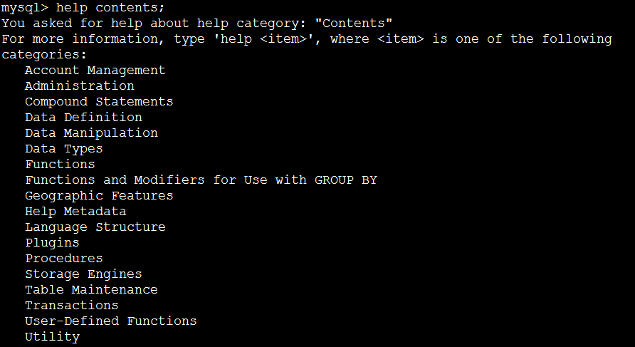 其实,MySQL数据库内置了帮助文档,通过help contents即可查看。