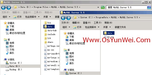 1、备份D:\Program Files\MySQL\MySQL Server 5.5\中的data目录为data-bak