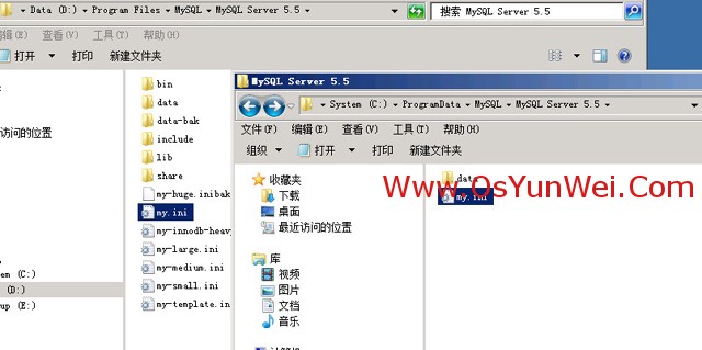 2、复制C:\Documents and Settings\All Users\Application Data\MySQL\MySQL Server 5.5\目录下的my.ini到