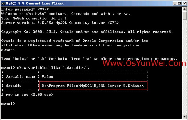可以看到MySQL数据库存放目录已经修改为D:\Program Files\MySQL\MySQL Server 5.5\data