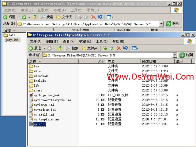 2、复制C:\Documents and Settings\All Users\Application Data\MySQL\MySQL Server 5.5\目录下的my.ini到