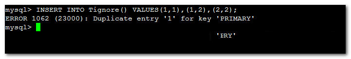 正常的插入如果插入的记录中存在键重复会报错,整个语句都会执行失败