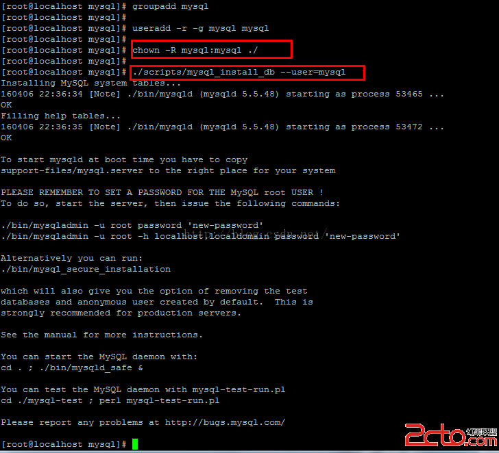 安装数据库:执行命令./scripts/mysql_install_db --user=mysql