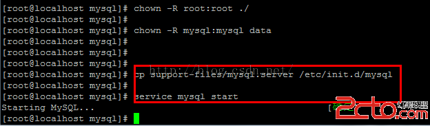 添加开机启动:执行命令cpsupport-files/mysql.server /etc/init.d/mysql,把启动脚本放到开机初始化目录