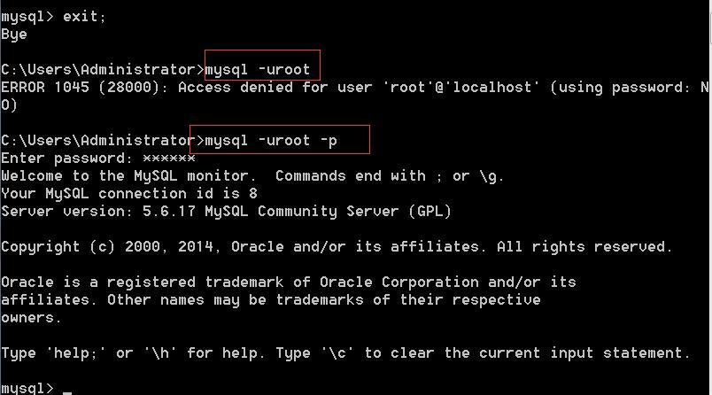 退出后,发现在此使用mysql -uroot登录,会登陆不成功,只能使用密码登陆。