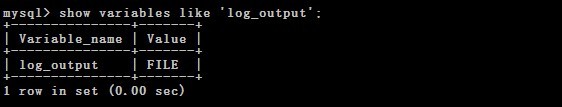 mysql> show variables like 'log_output';