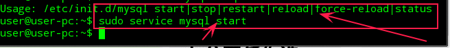 启动mysql命令(其它关闭,重启等功能只需将start换成相应的stop,restart等字母即可):$sudo service mysql start