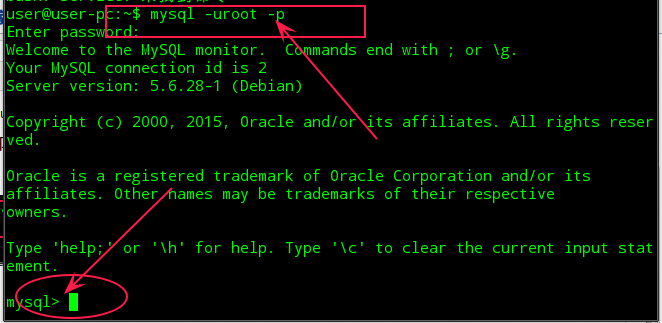 启动之后,进入mysql命令为:$ mysql -u用户名 -p密码