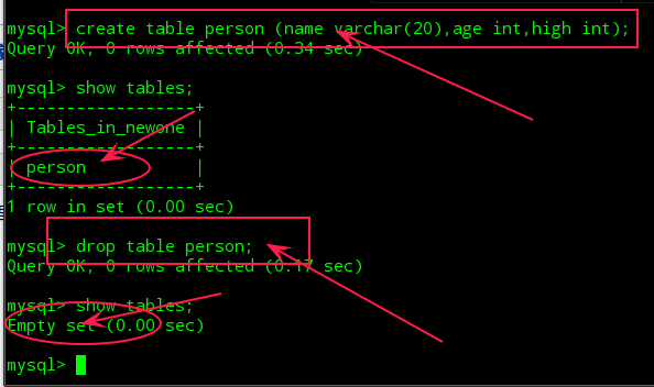 删除一个旧表:>drop table 表名; 或 >drop table if exists 表名;