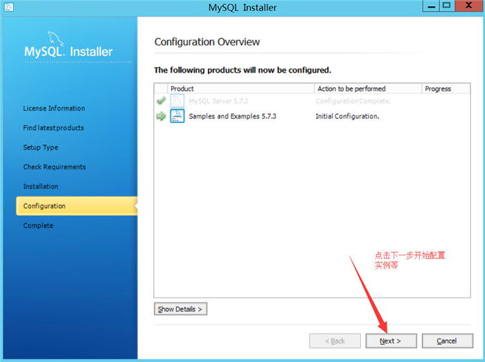 点击下一步,开始配置MySQL实例。