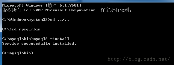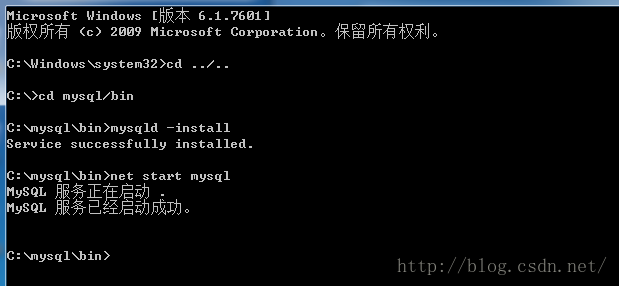 6.安装成功后就可以启动服务器并使用mysql了,安装好以后使用 net start mysql即可启动mysql了
