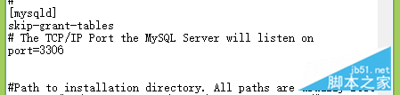 6.改好之后,再修改一下my.ini这个文件,把我们刚才加入的"skip-grant-tables"这行删除,保存退出再重启mysql服务就可以了。