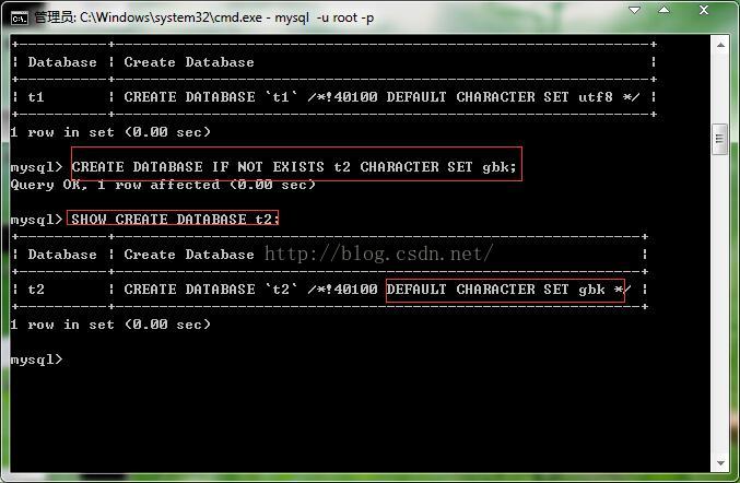 CREATE DATABASE IF NOT EXISTS t2 CHARACTER SET gbk; SHOW CREATE DATABASE t2;