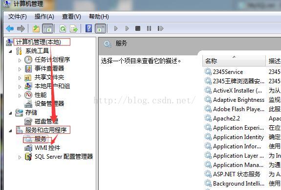 (2)出现计算机对话框,点击打开服务与应用程序中服务选项。