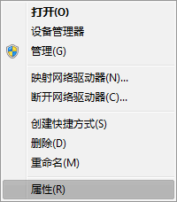 (1)右击桌面上的计算机图标出现菜单列表选项,选中属性。