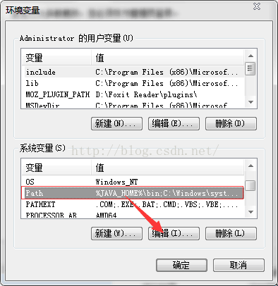 (4)在出现的环境变量对话框找到系统变量列表中的Path环境变量,点击编辑。