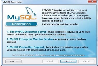 MSI格式的可以直接点击安装,按照它给出的安装提示进行安装,Windows操作系统下一般MySQL将会安装在C:\Program Files\MySQL该目录中。