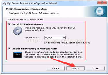 (4)询问是否安装为Window服务并给出是否配置Path环境变量,为了以后使用方便我都选上了,按"Next"继续。
