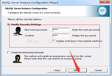 (5)设置root用户的密码,两次输出的密码必须一致,否则不会通过,按"Next"继续。