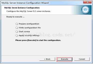 (6)询问我们是否准备执行设置选项,如果还需要设置,就按"Back"进行修改和配置,否则按"Excute"进行配置。