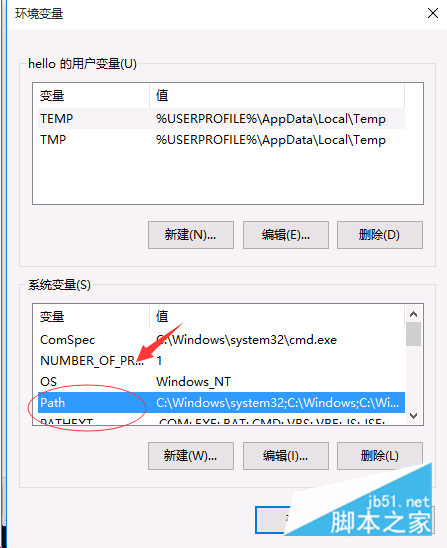 在“环境变量”窗口中的“系统变量”中找到“Path”,并点击“编辑…”进行编辑;