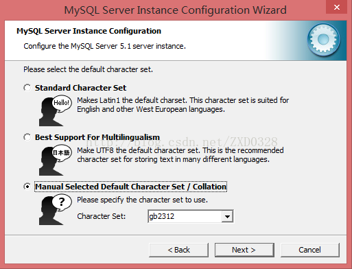 16、此时,选择第三个“Manual Selected...”,然后点击下拉框找到并选择“gb2312”,从而会支持中文,选择后如图所示: