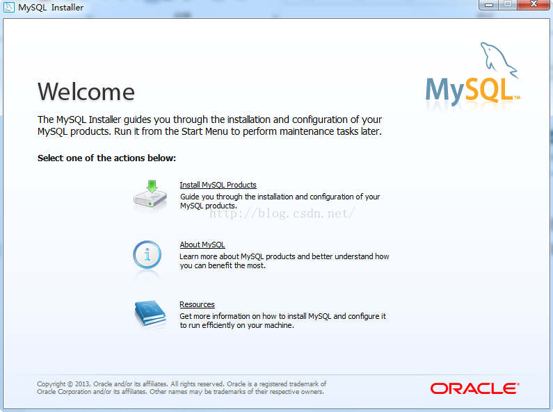 步骤1:双击MySQL安装程序(mysql-installer-community-5.7.10),会弹出如下图1.4所示的欢迎窗口。