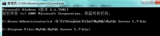 1)从控制台进入到MySQL解压目录下的 bin 目录下(注意 cmd最好以管理员身份运行):如下图3.0所示