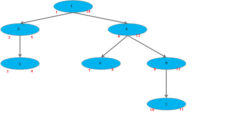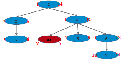 通俗说法:能被 '节点4' 包住的节点,通过左节点和右节点来判断是否被 '节点4' 包住。