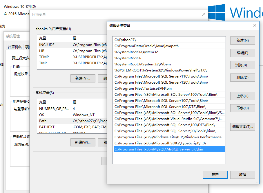 PATH=.......;C:\Program Files\MySQL\MySQL Server 5.6\bin (注意是追加,不是覆盖)