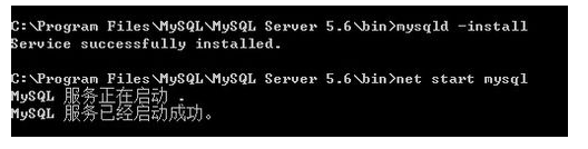 安装成功后,再输入net start mysql 启动服务,然后出现