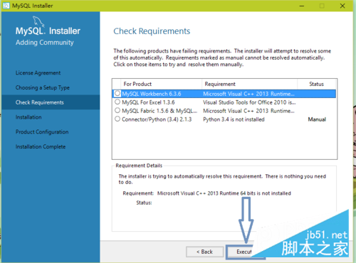 选择Execute进行配置,配置完成后选择next