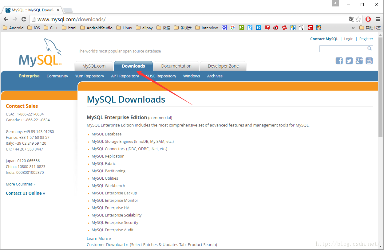 1. 在浏览器里打开mysql的官网http://www.mysql.com/