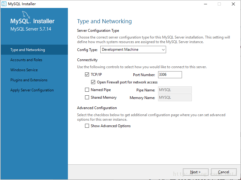 6. 点击“Next”按钮进入MySQL Server 的配置