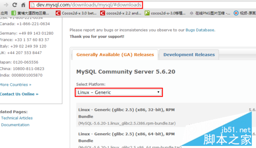 到mysql官网下载mysql编译好的二进制安装包,在下载页面Select Platform:选项选择linux-generic,然后把页面拉到底部,64位系统下载Linux - Generic (glibc 2.5) (x86, 64-bit),32位系统下载Linux - Generic (glibc 2.5) (x86, 32-bit)