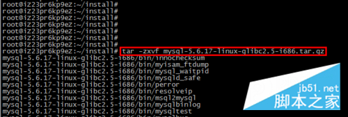 进入安装包所在目录,执行命令:tarmysql-5.6.17-linux-glibc2.5-i686.tar.gz