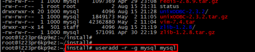 执行命令:groupadd mysql和useradd -r -g mysql mysql
