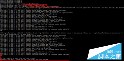 安装数据库:执行命令./scripts/mysql_install_db --user=mysql