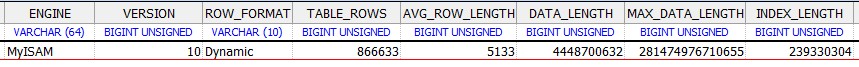 关于行和表大小的单位都是字节,我们经过计算可以知道