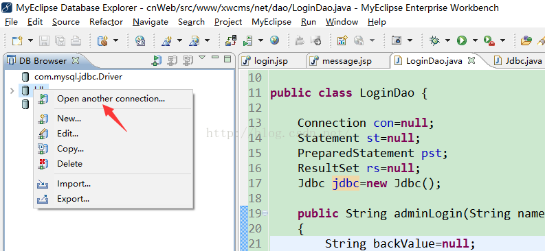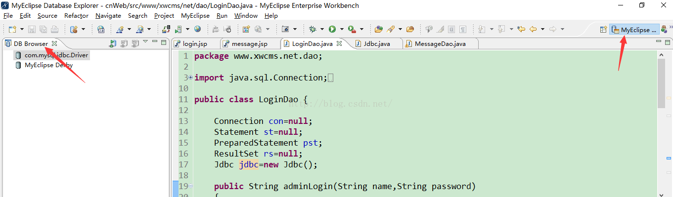 方法:Window-->Openperspective-->MyEclipse Database Explorer