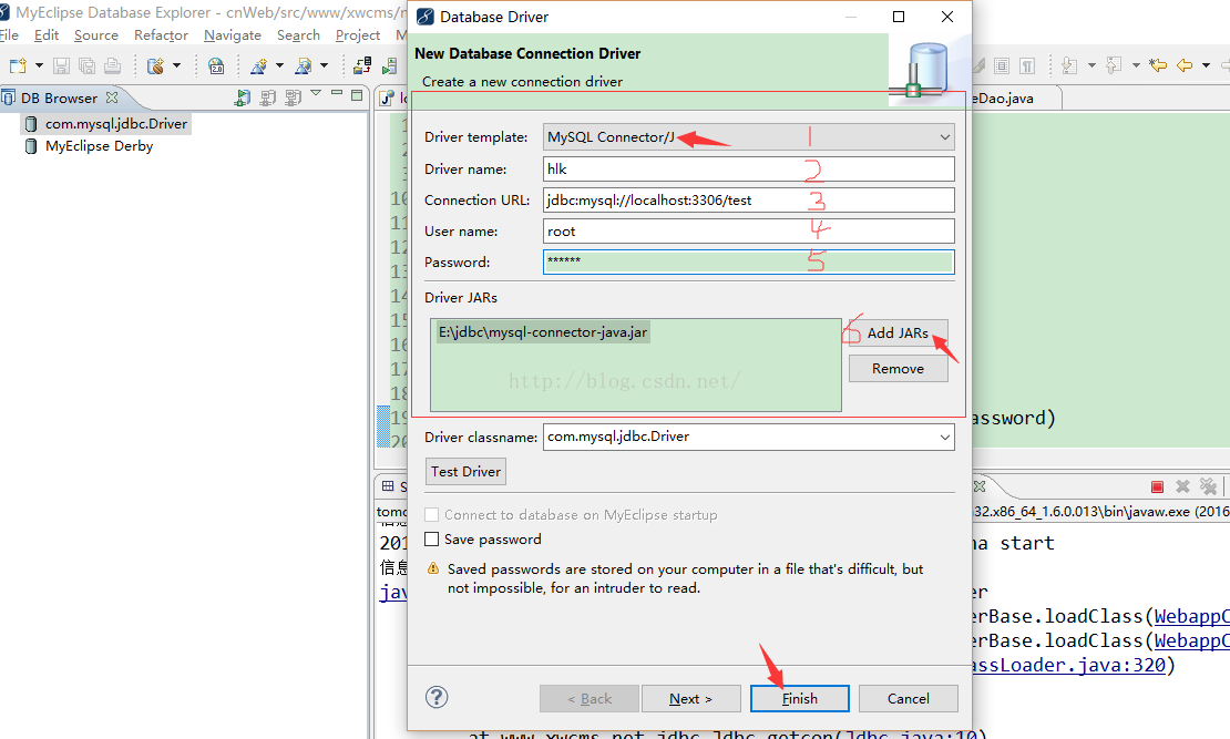 3.在打开的DataBase Driver中填写内容,解释一下个表格代表的东西