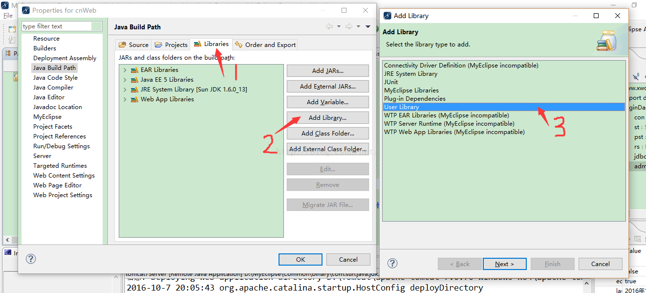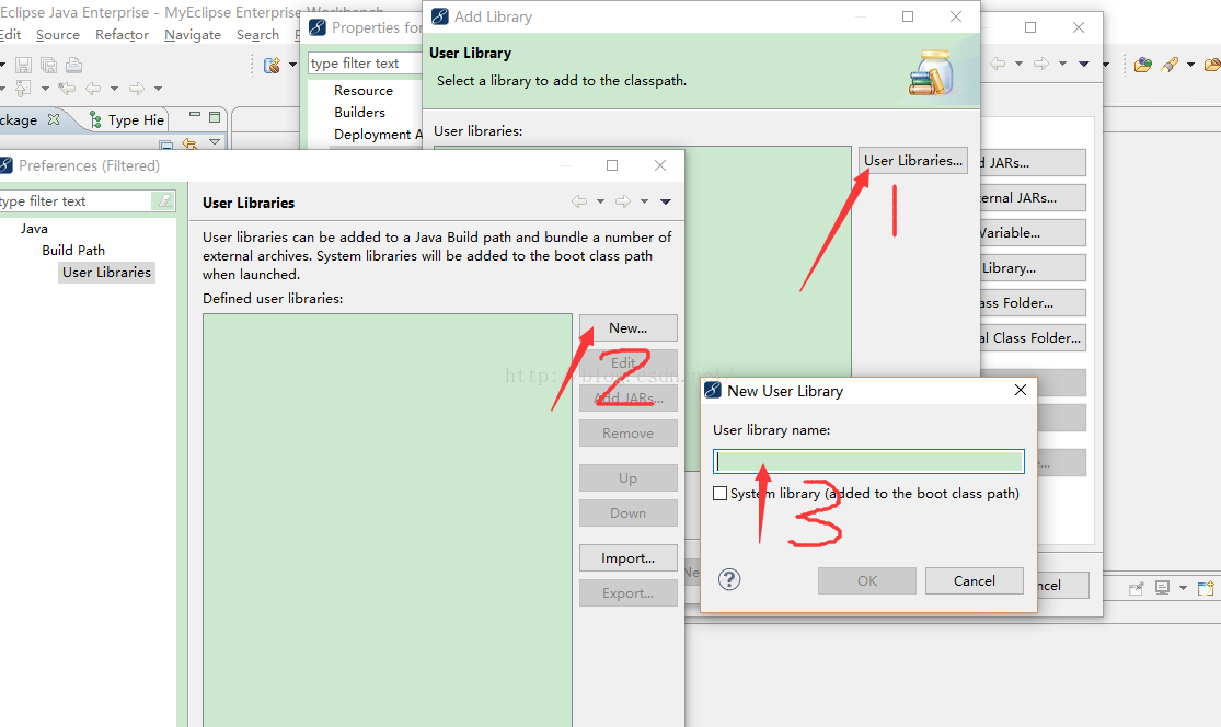 在项目中添加mysql包,按图片顺序操作,然后点击next后新建一个,起个名字,然后点击ok就可以。再添加jar包,将mysql包导入其中,然后点ok,finish。就完成啦。