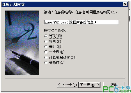 数据库名称为:952game数据库备份目的地:d:\db_bak\ (你想把数据库备份到哪个盘的路径)我想备到D盘的db-bak目录下面============================新建db_bak.bat,写入以下代码