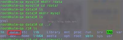 4. 创建数据仓库目录 /data/mysql/命令如下。