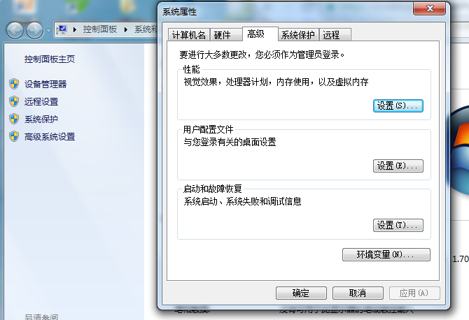 2、选择高级系统变量设置,点击环境变量