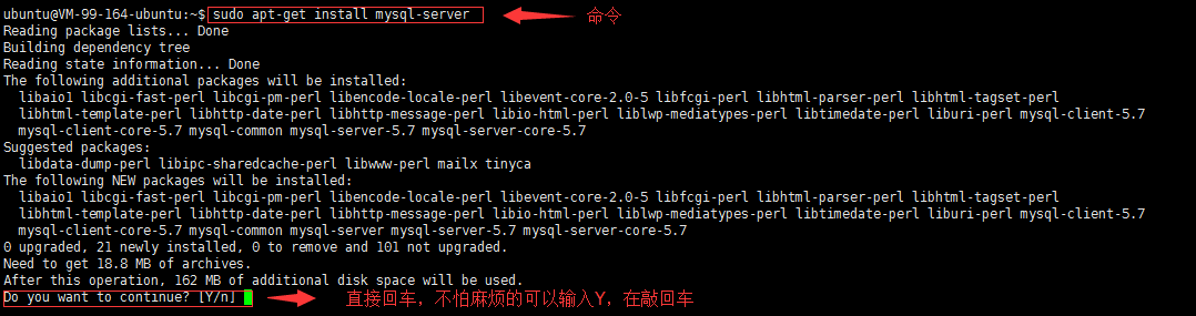运行完这句命令后,不是root的话会要你输入root密码,密码输入正确后,系统就自动给你下载MySQL了,如下图: