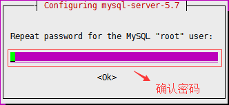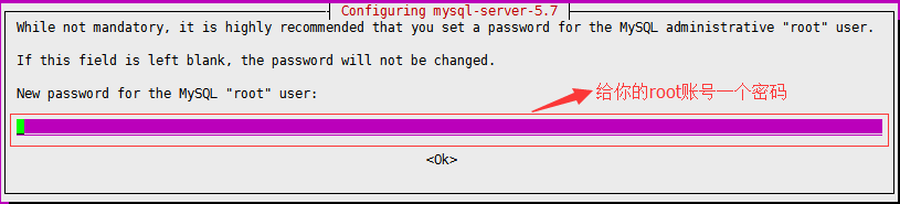 执行完上面步骤后,会进入一个“图形界面:)”,用于创建MySQL的root密码,如图: